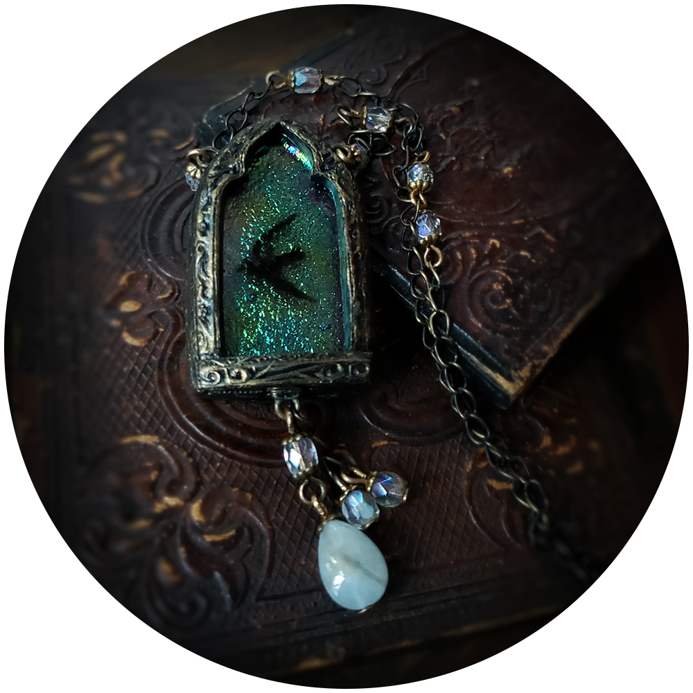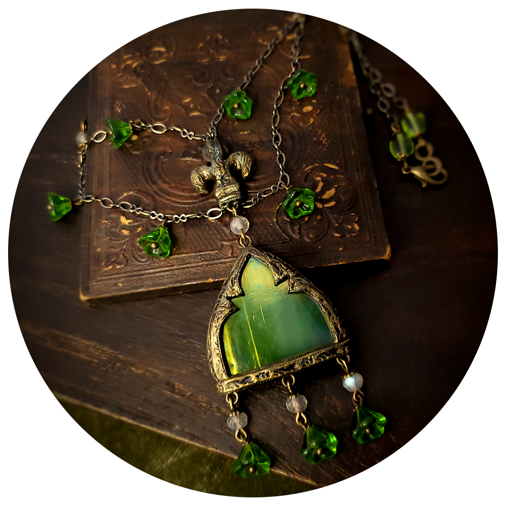 a tribute to the gothic arches of Medieval Architecture, the ivy of illuminated manuscripts, mysterious reliquary vessels
