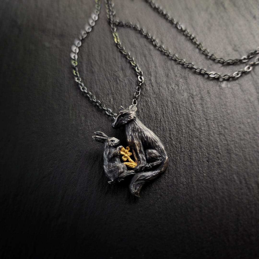lapin, renard et fleur arch window amulet - antiqued sterling & bronze lapin, renard et fleur amulet. joyeux mille-fleurs earrings lapin, renard et fleur d'or amulet. joyeux mille-fleurs earrings (sans fioritures)