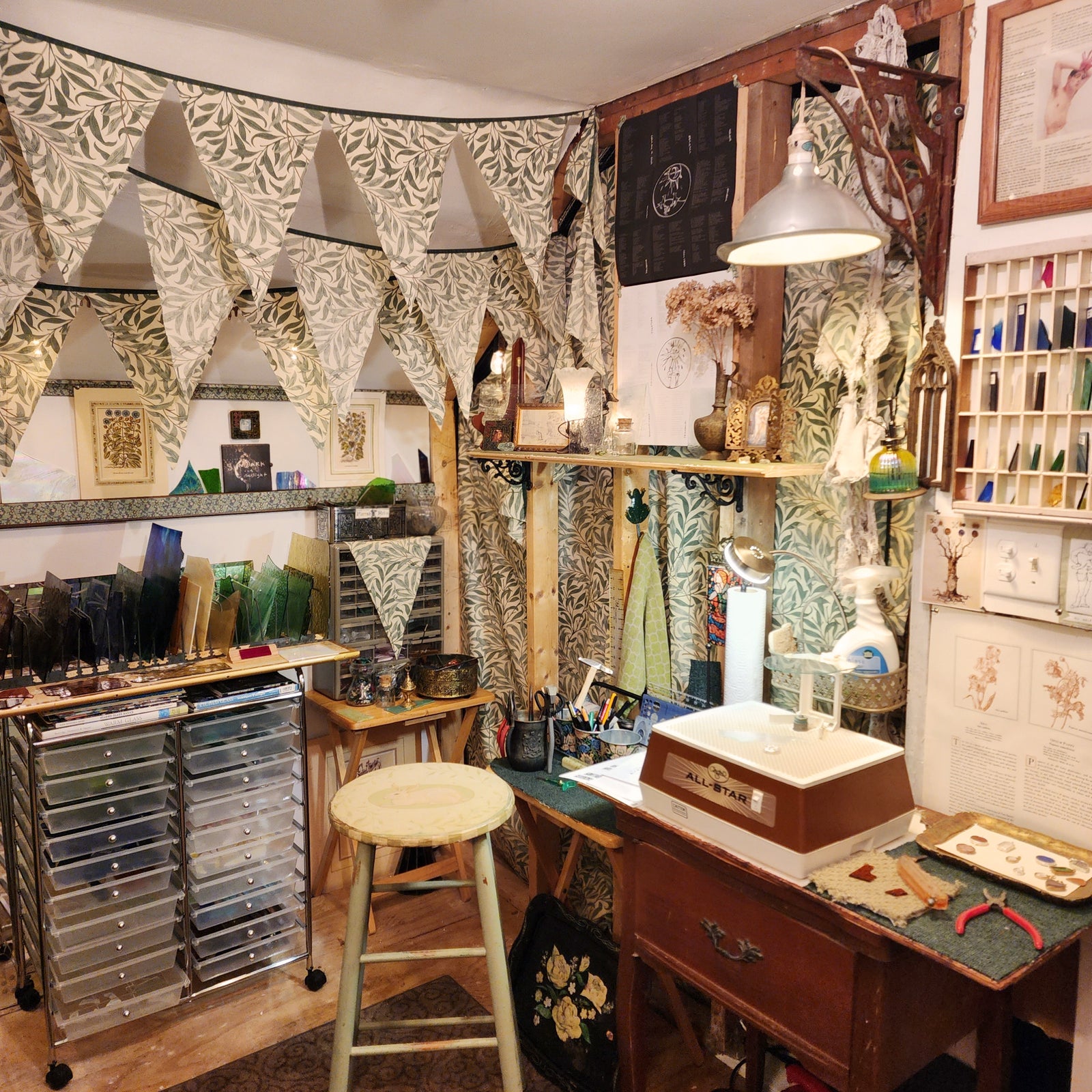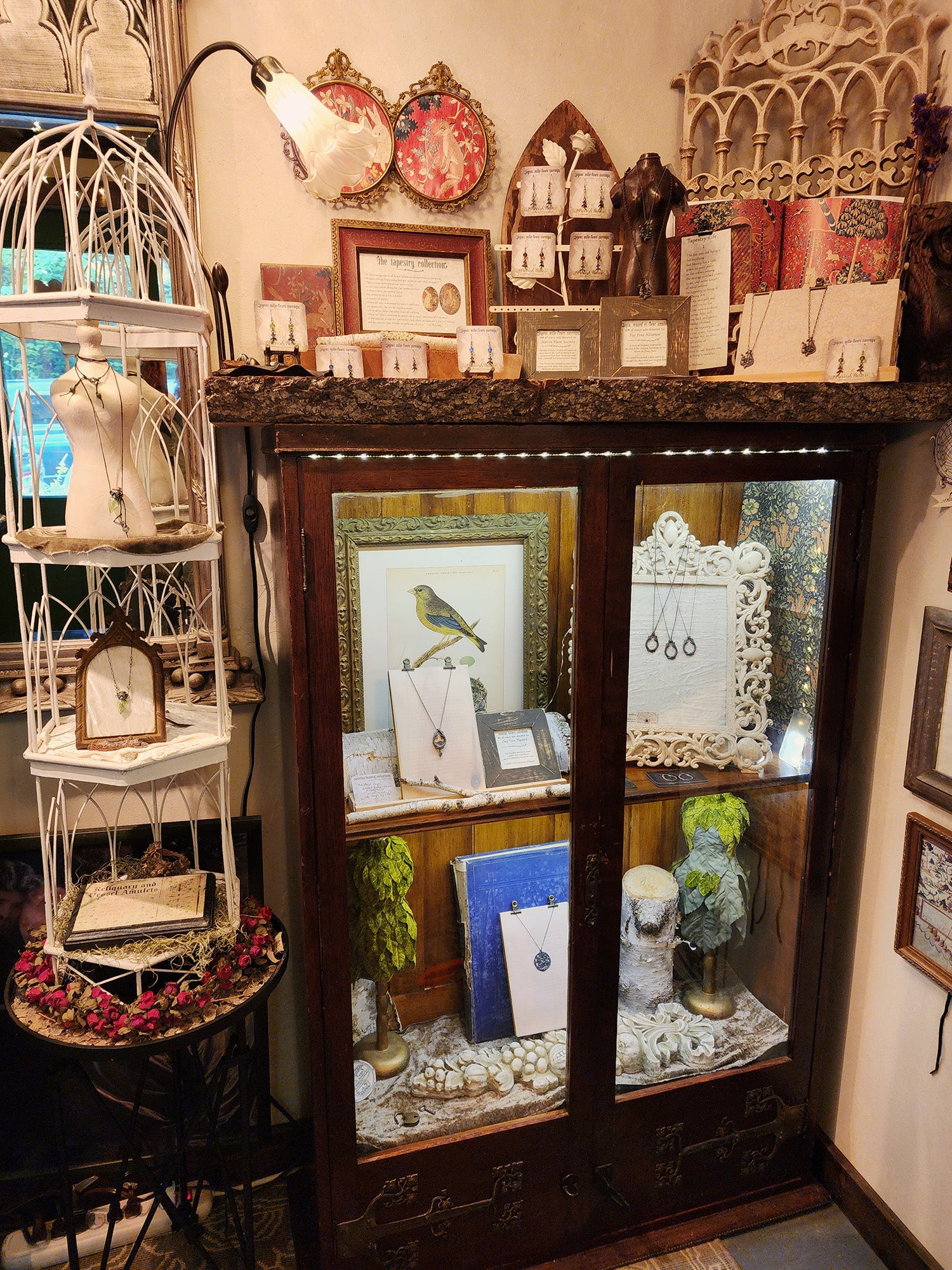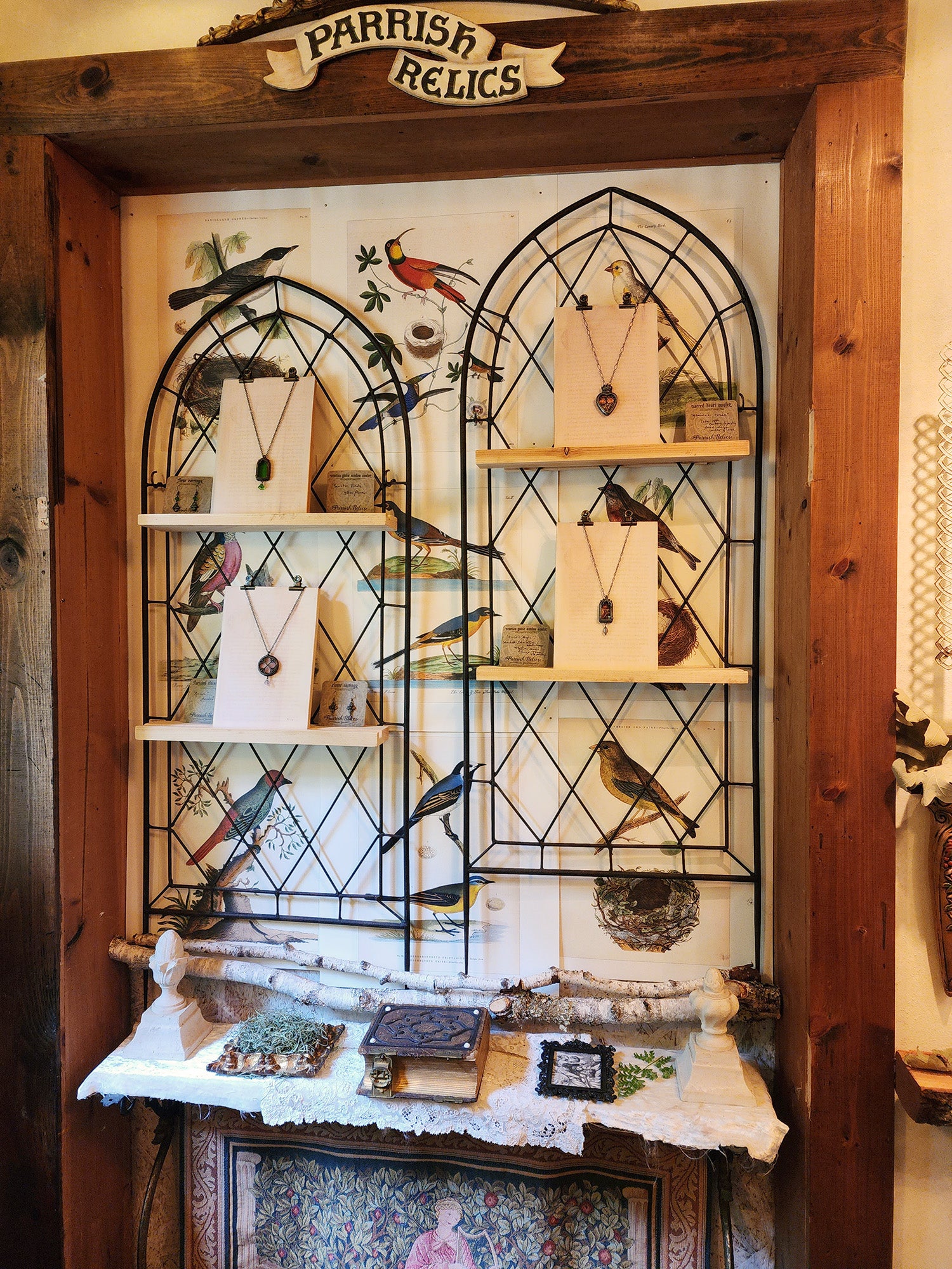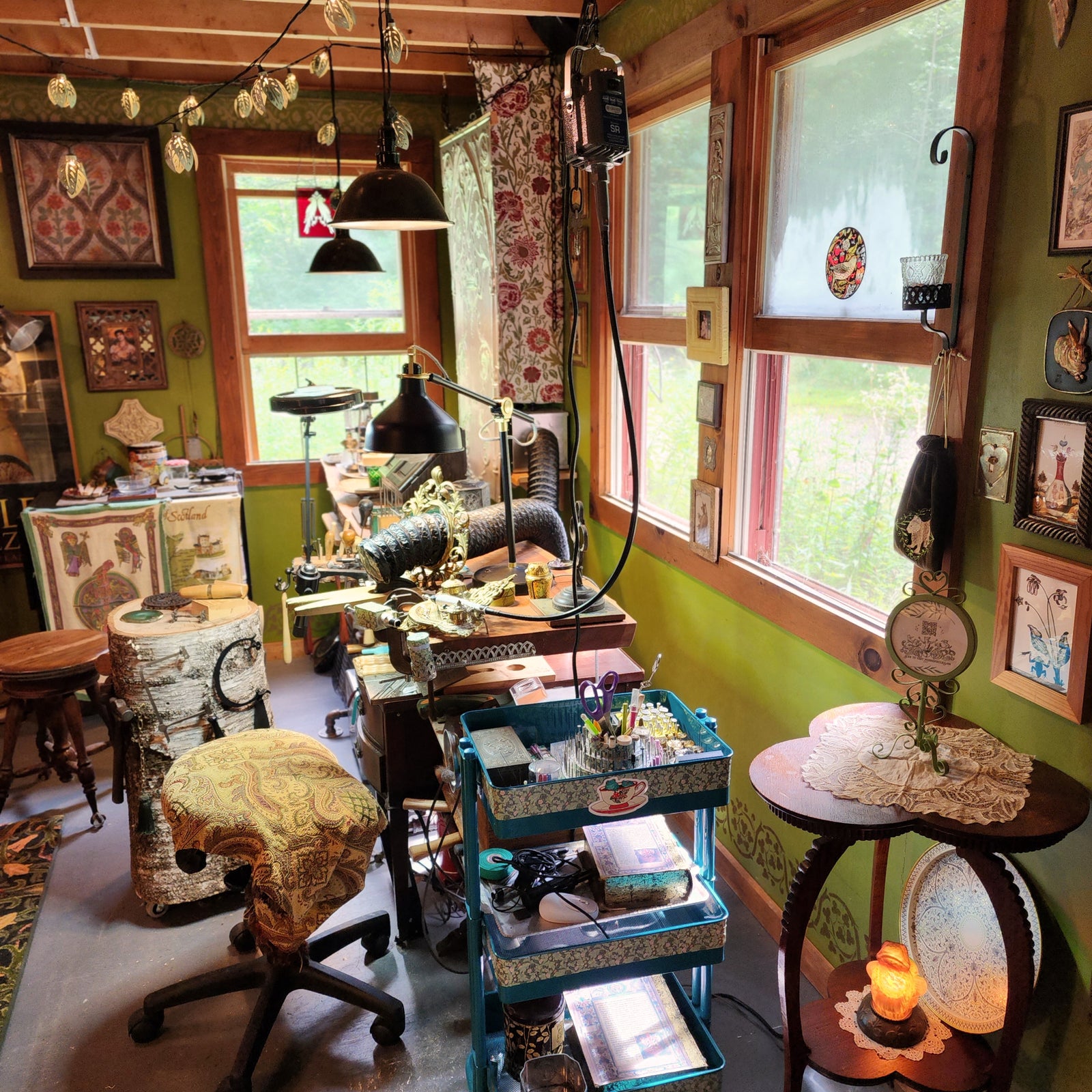 My workshop is open to the public once a year for the Hilltown Open Studio Tour. I enjoy setting up a tiny pop-up shop / amulet gallery in a former hall & closet space for the weekend!